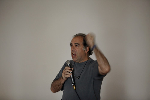 O discurso tem vindo a ser afinado à medida que passa por diversas escolas do País. "Agora vamos ouvir o mesmo poema dito por David Fonseca". Ouvem-se joviais suspiros femininos na assistência... Na parede branca aparece a cara do vocalista dos Silence 4. "Amar é uma eterna inocência", são palavras de Alberto Caeiro, um dos heterónimos de Fernando Pessoa, há de explicar o ator. Assim se passa a hora seguinte, entre poetas, poemas e poesia. Ora ditos ao vivo, ora projetados, nas vozes de pessoas tão diferentes como João Reis ou Inês Castelo Branco. Saem três meninas do auditório. João Lagarto força o silêncio, para mostrar desagrado. Nem por isso as entradas e saídas acabam. Soltam-se algumas palavras mais indecorosas quando Bocage vem à baila. E a mostra termina com Raul Solnado a dizer Fernando Pessoa, em forma de Liberdade. Ouvem-se palmas. E o professor de português, António de Sousa, ergue-se: "Tem mais um minuto?" João Lagarto cede o palco a uma espécie de improviso de alguns estudantes. Tiago volta ao palco, imponente, soltando palavras de António Gedeão. Seguem-se meia dúzia de outros alunos.